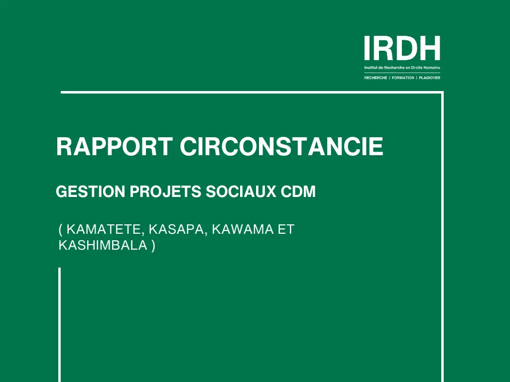 Rapport Circonstancié: Gestion des projets sociaux CDM ( Kamatete, Kasapa, Kawama et Kashimbala)
