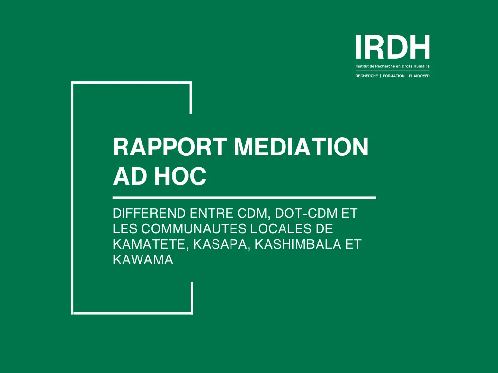 DIFFEREND ENTRE CDM, DOT-CDM ET LES COMMUNAUTES LOCALES DE KAMATETE, KASAPA, KASHIMBALA ET KAWAMA