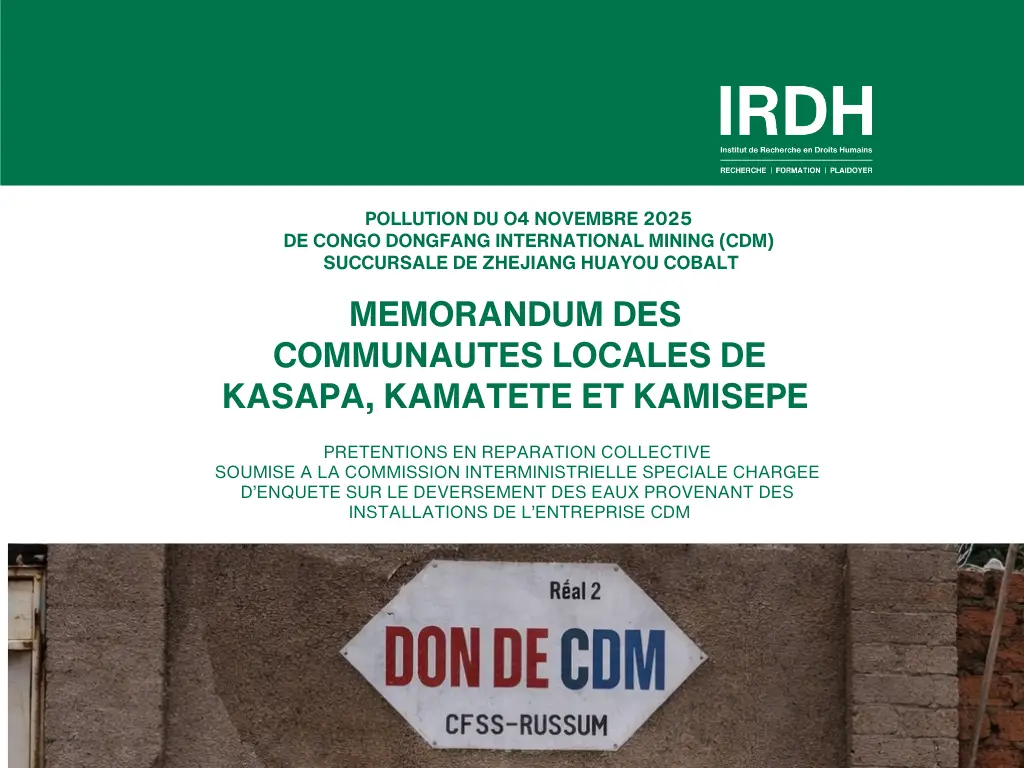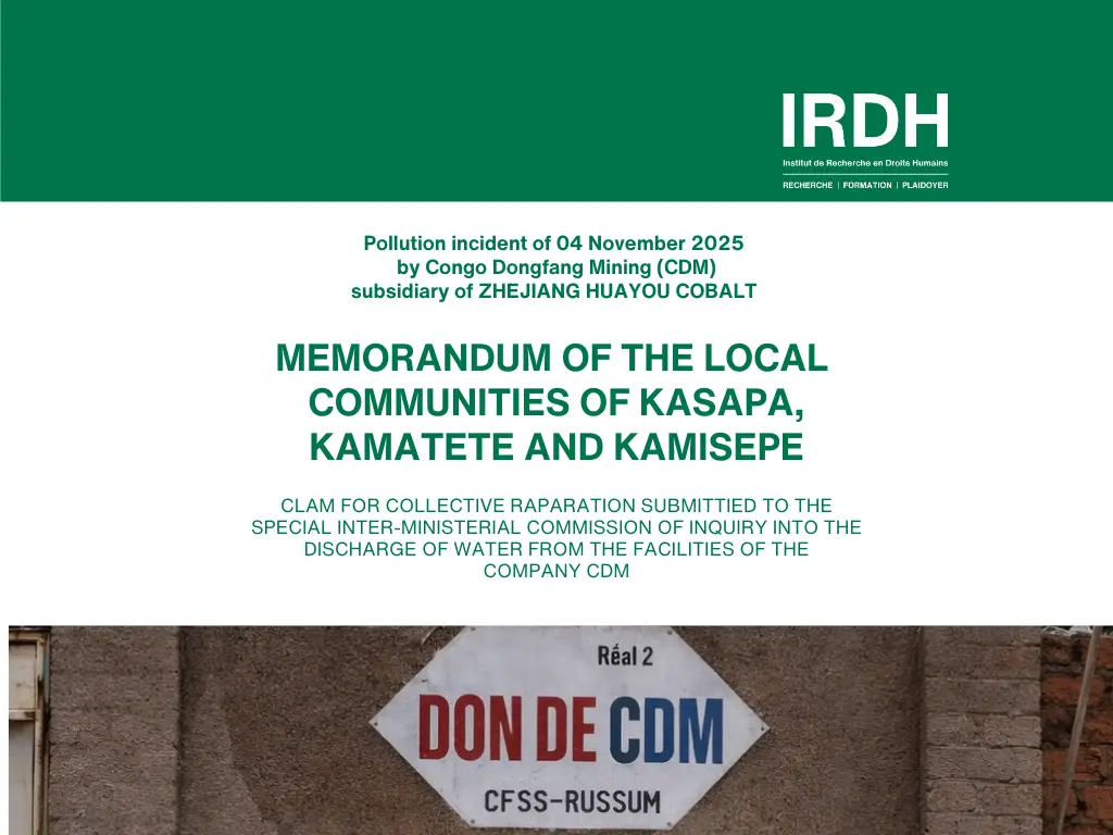 Pollution du O4 Novembre 2025 de Congo Dongfang International Mining (CDM) Succursale de Zhejiang Huayou Cobalt